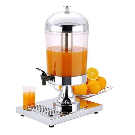 Dávkovač na džúsy je praktické zariadenie určené na servírovanie studených nápojov v reštauráciách, hoteloch, bufetoch alebo počas rôznych podujatí. Produkt sa vyznačuje veľkou kapacitou 8 litrov, pevnou konštrukciou z nehrdzavejúcej ocele a pohodlným plastovým kohútikom, čo zaručuje jednoduchú obsluhu a trvácnosť.