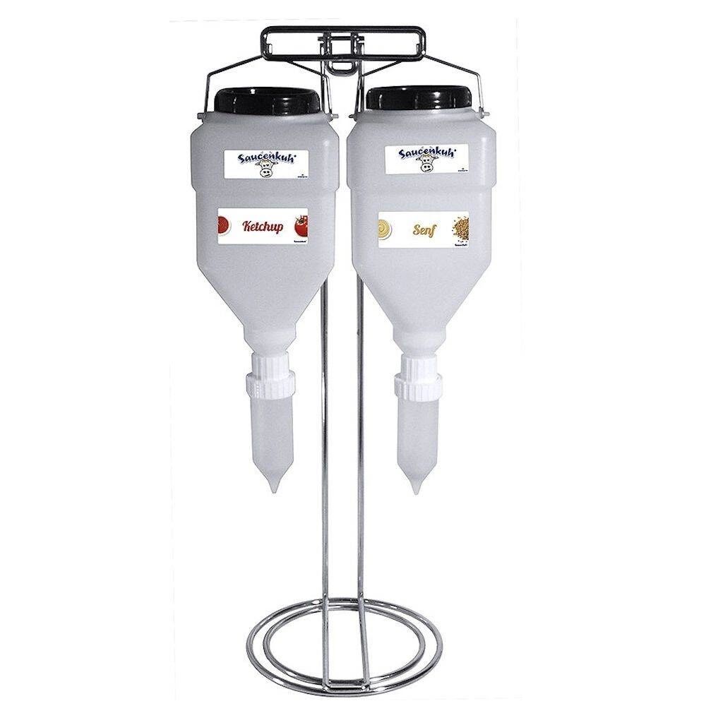 Dávkovač omáčok s dvojitou nádobou s objemom 5,5 litra a kovovým stojanom. . Umožňuje pohodlné dávkovanie omáčok . Súčasťou sú  dve nádoby na omáčky zo silikónu a kovový stojan.