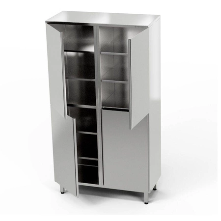 Delená úložná skriňa s rozmermi 120x50x180 cm z nehrdzavejúcej ocele J4. V každej časti skrine sú 2 lavice.
