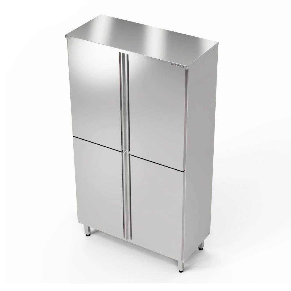 Delená úložná skriňa s rozmermi 90x50x180 cm z nehrdzavejúcej ocele J4. V každej časti skrine sú 2 lavice.