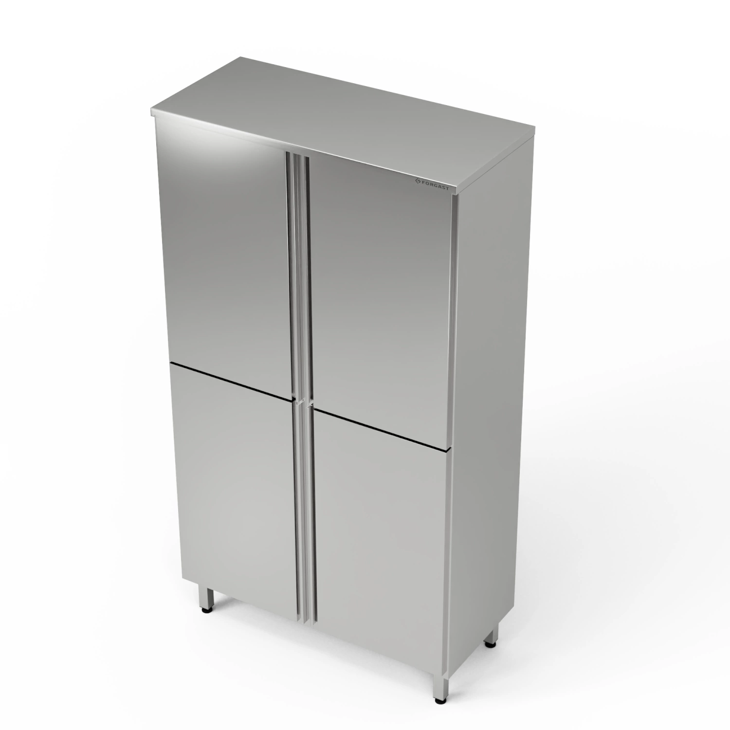 Delená úložná skriňa s rozmermi 90x50x200 cm z nehrdzavejúcej ocele J4. V každej časti skrine sú 2 półki.