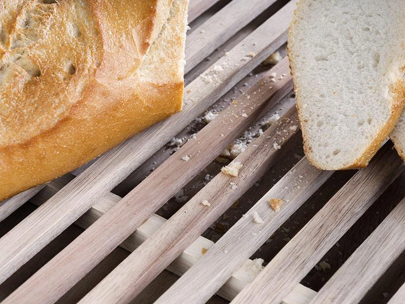 Krájacia doska LETTER je ideálna na každodenné používanie v domácej kuchyni aj v profesionálnych gastronomických prevádzkach. Vďaka vyberateľnej tácke na omrvinky je udržiavanie poriadku pri krájaní pečiva mimoriadne jednoduché. Protišmykové nožičky zaručujú stabilitu aj na hladkých povrchoch a veľká pracovná plocha umožňuje pohodlnú prípravu surovín na rôzne jedlá. Dekoratívne nápisy dodávajú doske unikátny charakter, vďaka čomu je aj atraktívnym prvkom kuchynského vybavenia.