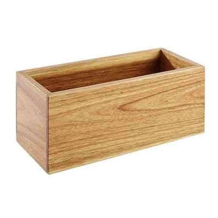 Drevená debnička Woody je praktické a štýlové riešenie na organizáciu priestoru v gastronómii alebo v domácnosti. Vyniká prirodzeným vzhľadom a pevným spracovaním z akáciového dreva. Skvele poslúži na servírovanie príborov, korenín alebo servítok.