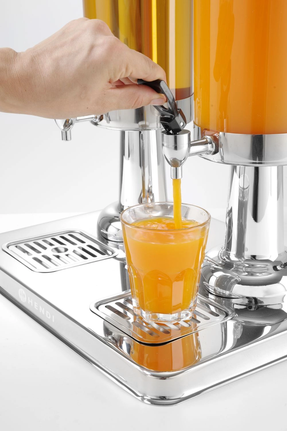 Dávkovač, dávkovač šťavyójny s kapacitou 2x3 litre. Obsahuje chladiacu vložku na nápoje z nehrdzavejúcej ocele lód. Ľahko čistiteľná odkvapkávacia mriežka. Nádoba na džús vyrobená z polykarbonátu. Kohútik bez odkvapkávania.
