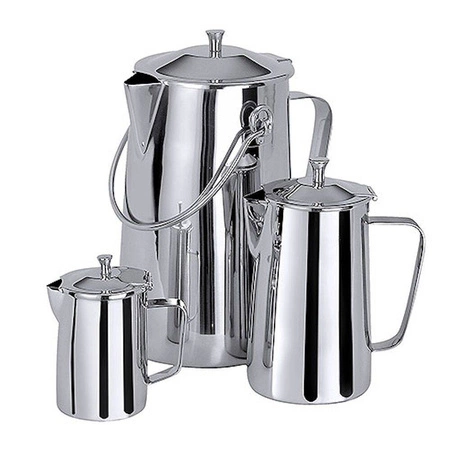 Tento džbán na kávu je praktická nádoba určená na podávanie väčšieho množstva kávy. Vyrobený z odolnej, leštenej nerezovej ocele, vybavený pohodlnou rukoväťou a stabilným vekom na pántoch, je ideálny ako pre gastronómiu, tak aj počas firemných stretnutí či rodinných osláv.