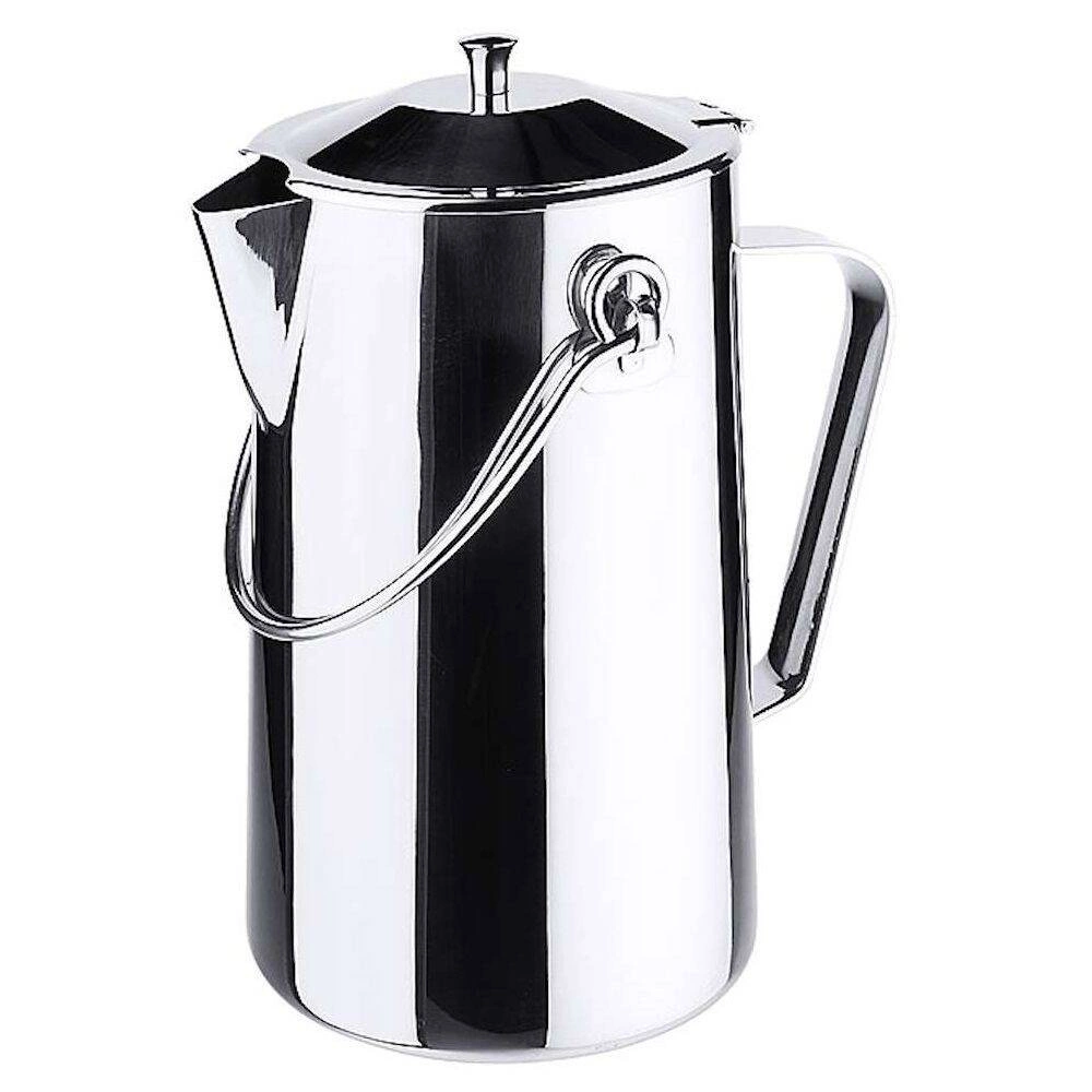 Kávová kanvica s vekom je praktická nádoba, ktorá sa osvedčí v gastronómii, kancelárii alebo počas domácich stretnutí. Vyniká veľkou kapacitou 3 litre a pevnou konštrukciou z nerezovej ocele. Veko pripevnené na pántoch uľahčuje používanie a umožňuje pohodlné nalievanie nápojov.