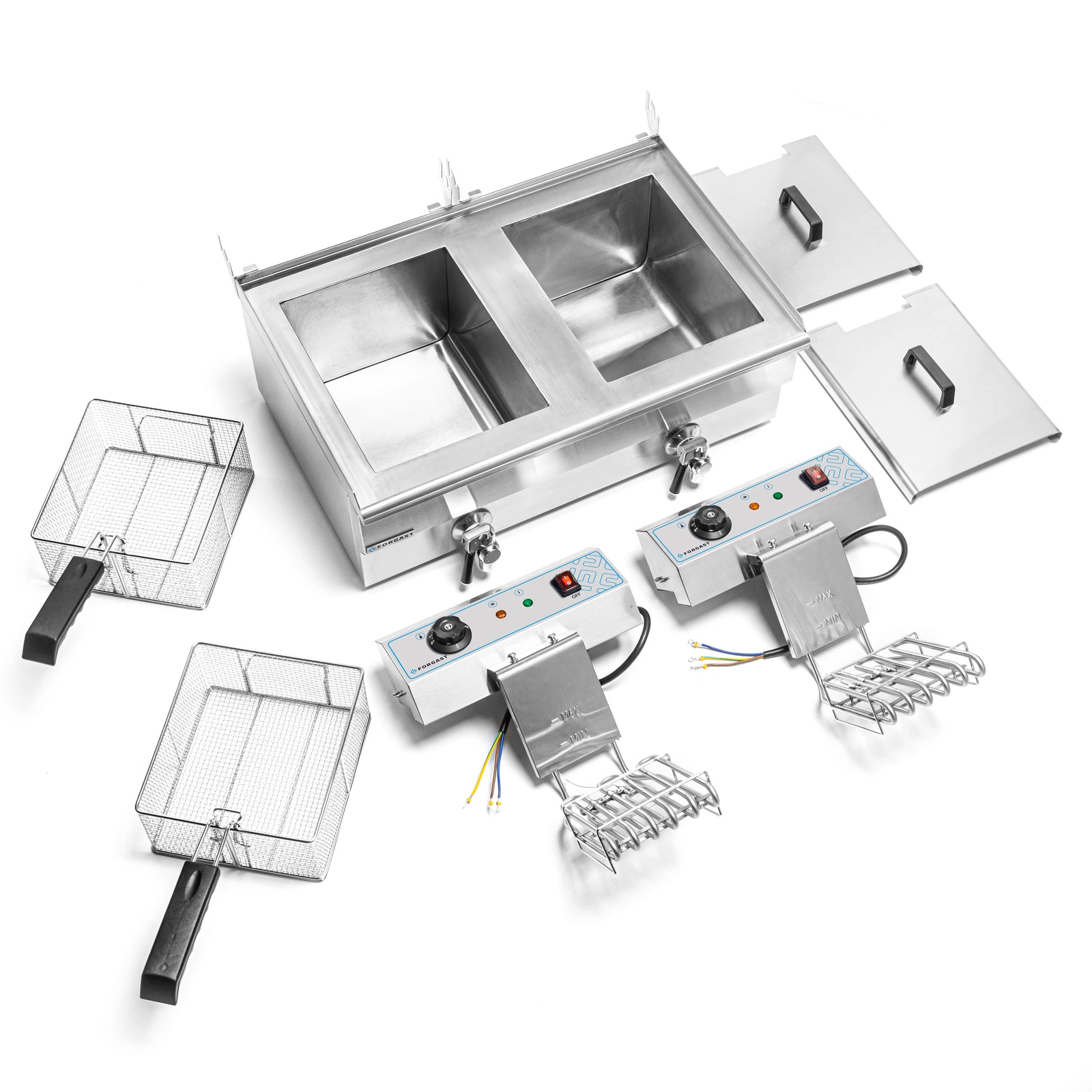 Dvojitá komora s objemom 2x16 litrov – umožňuje súčasnú prípravu veľkého množstva rôznych vyprážaných jedál, vďaka čomu je zariadenie ideálne na obsluhu väčších skupín hostí alebo prevádzok s vysokou návštevnosťou.