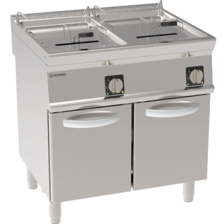 Elektrická 2-komorová fritéza s objemom 2x17 litrov na uzavretom podstavci. Spotrebič značka TecnoinoxSéria Tecno74 je kombináciou modernosti a spoľahlivosti a je určená pre stredné a veľké reštaurácie a hotely. Vytvorený s ohľadom na najvyššie štandardy kvality ponúka nielen výnimočný výkon, ale stará sa aj o detaily, ktoré uľahčujú každodennú prácu v kuchyni;Vyrobené z nehrdzavejúcej ocele najvyššej triedy AISI 304 s hrúbkou 1,5 mm zaručuje neuveriteľnú odolnosť. Vysokokvalitné materiály, starostlivý dizajn a leštené povrchové úpravy robia jednotky a kompozície Tecno74 robustnými a praktickými. Sortiment Tecno74 bol navrhnutý na jednoduchú inštaláciu a čistenie.