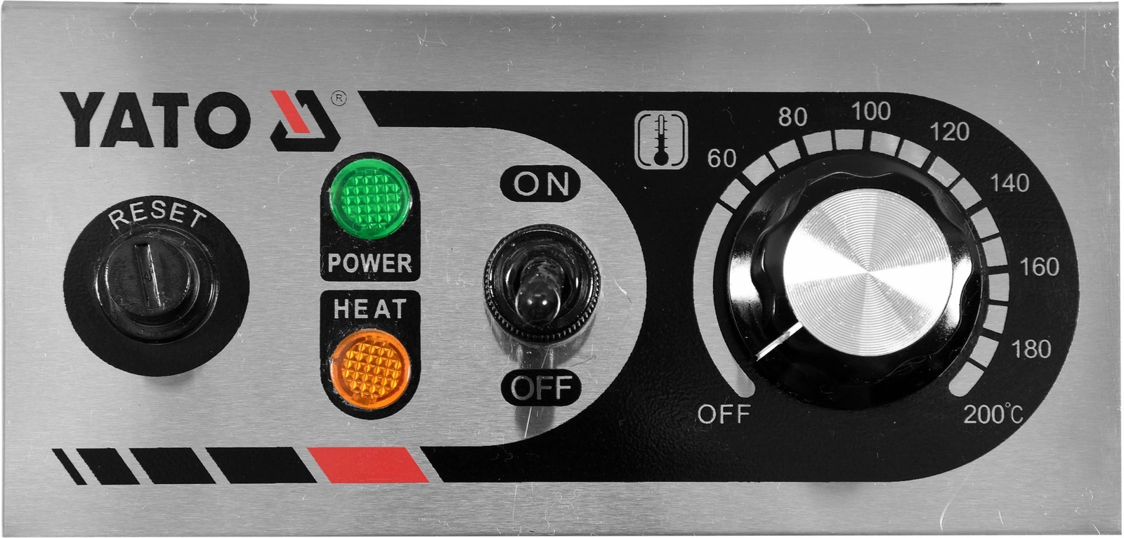 Fritéza s 1 komorou s objemom 3,5 l značky YATO. Je určená na vyprážanie v hlbokom tuku: hranoliek, mäsa, rýb, krokiet, zeleniny. Nádrž fritézy má celkový objem 6 l. Minimálna hladina oleja je 2,5 l a maximálna 3,5 l.