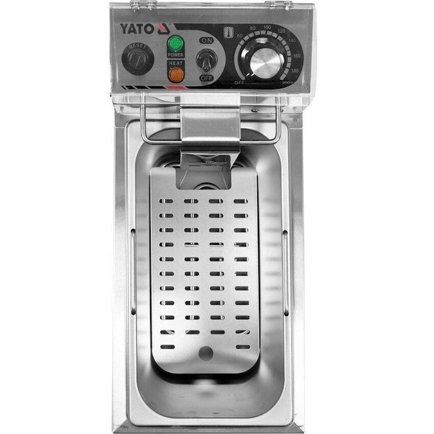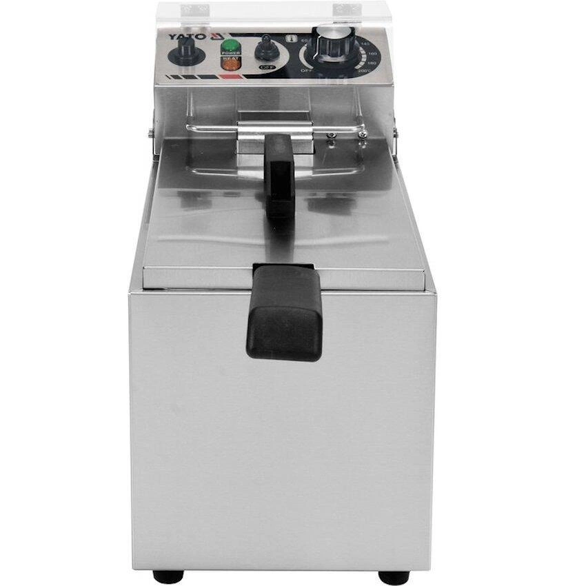 Jednokomorová fritéza s objemom 5L značky YATO. Je určená na vyprážanie v hlbokom oleji: hranoliek, mäsa, rýb, krokiet, zeleniny.Nádrž fritézy má celkový objem 8L. Minimálna hladina oleja je 3,2L a maximálna 5L.