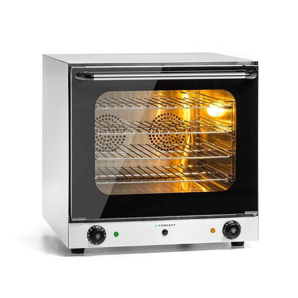 FORGAST FG09500 je ideálny tam, kde záleží na rýchlosti prípravy jedál a ich opakovateľnej kvalite. Manuálne zvlhčovanie komory umožňuje pečenie chrumkavého pečiva, šťavnatých zapekaných jedál alebo aromatických sendvičov. Vďaka kompaktným rozmerom je možné rúru umiestniť na pracovnú dosku, pričom odporúčaný odstup od steny (15–20 cm) zaručuje správne vetranie a bezpečnosť práce. Zariadenie nie je určené na pečenie pusiniek (bezy) z dôvodu automatickej prevádzky ventilátora, no skvele splní očakávania prevádzok podávajúcich teplé jedlá.