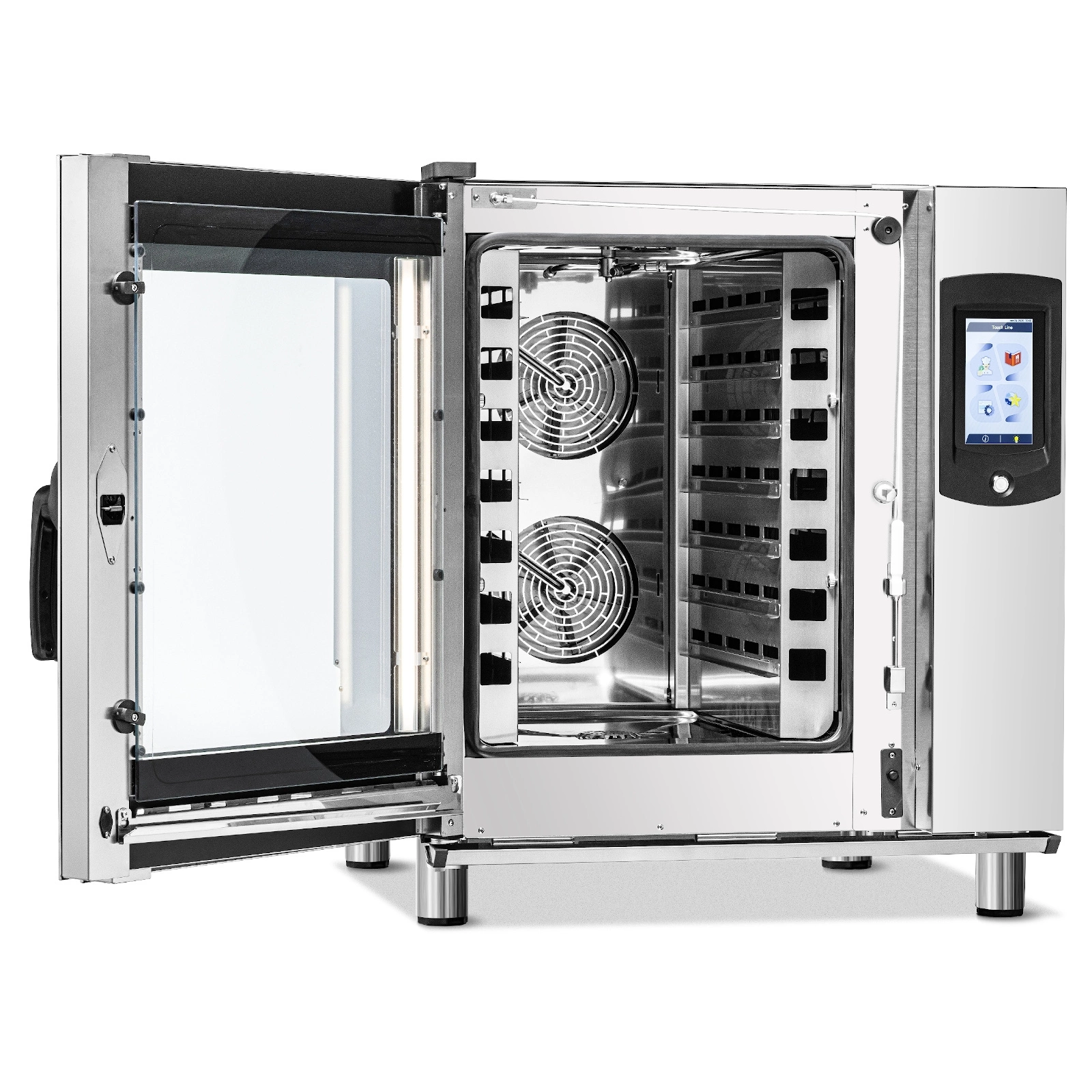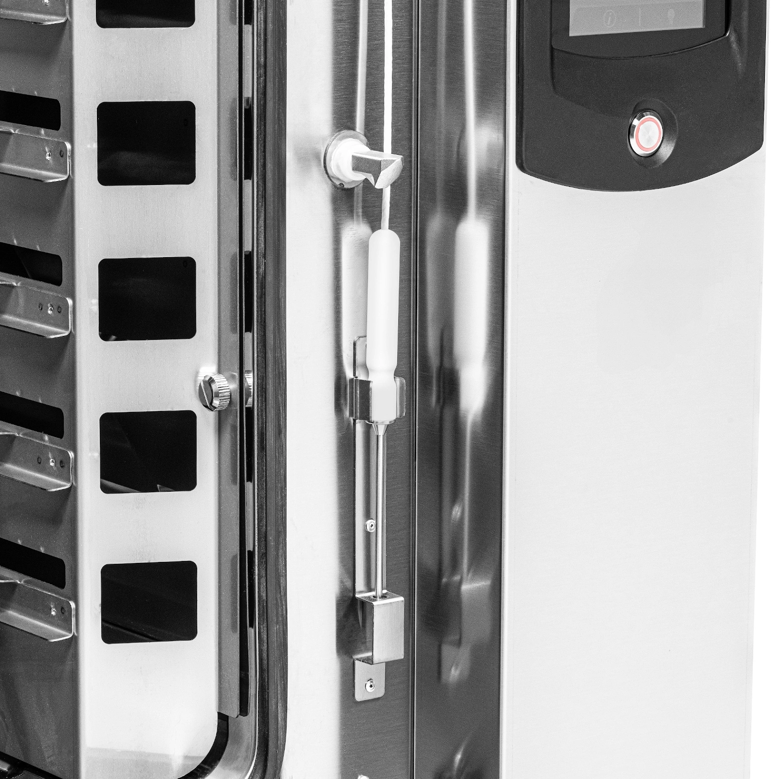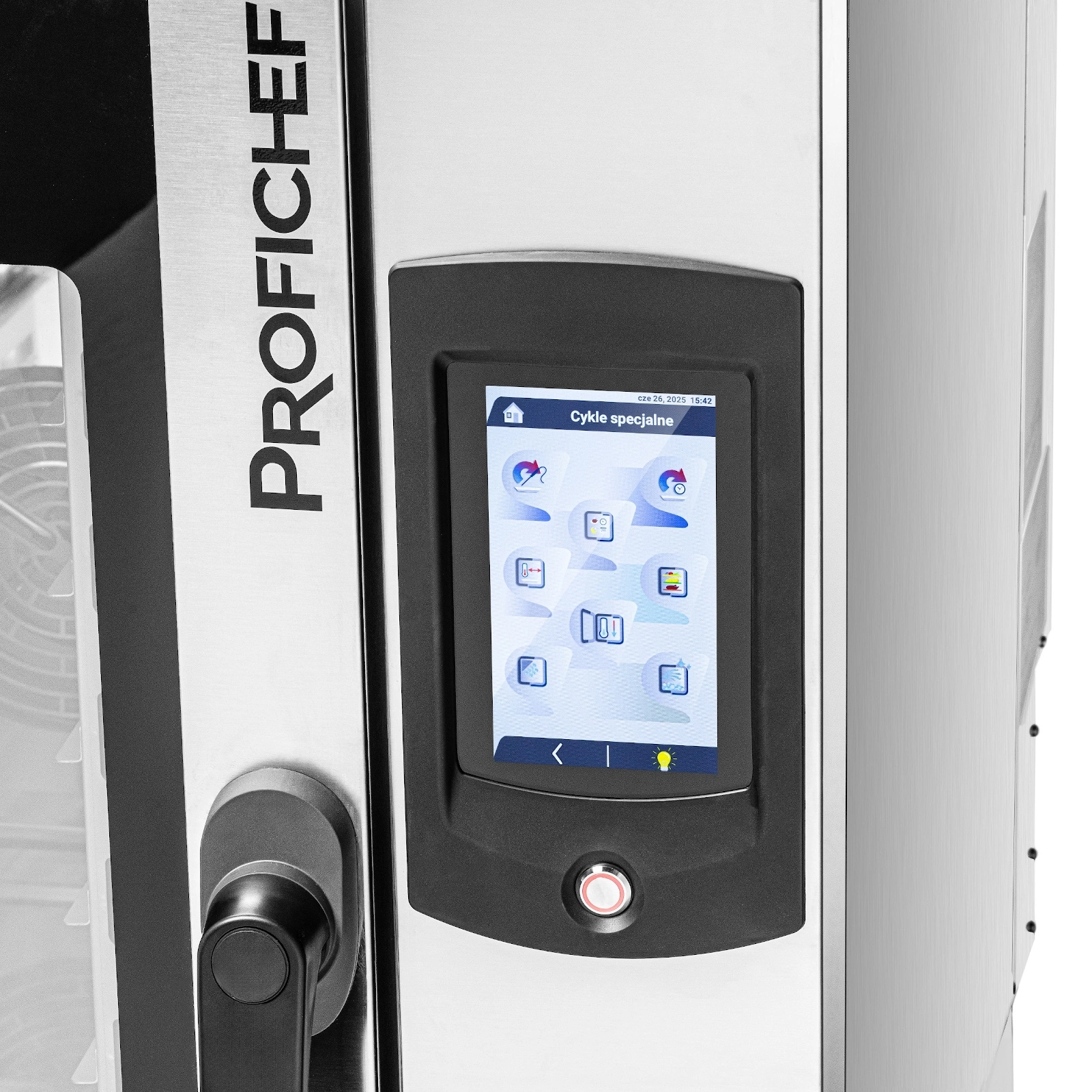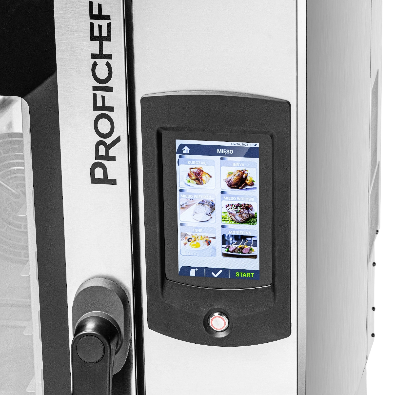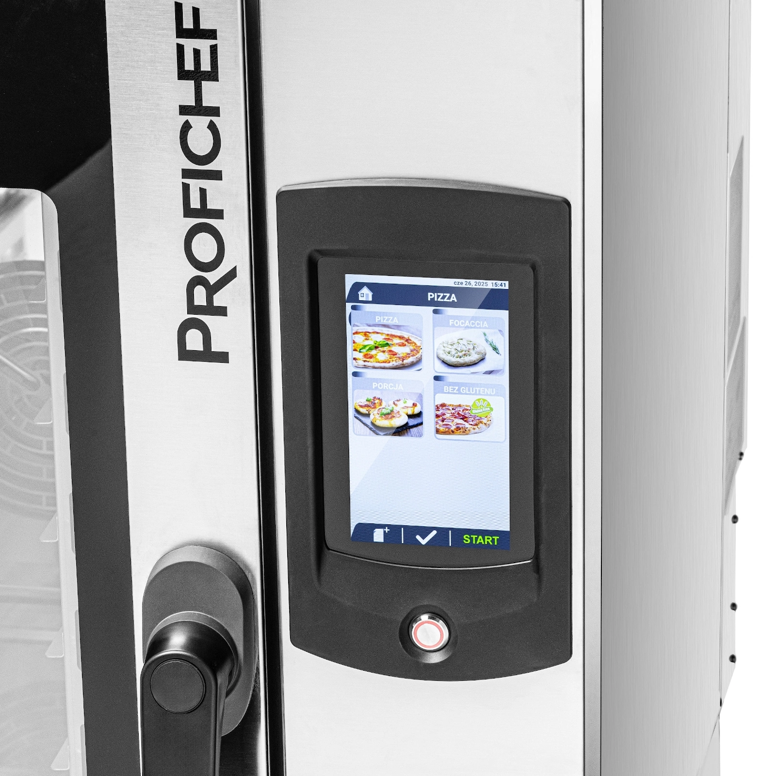 - Dotykový ovládací panel LCD – 7-palcová obrazovka poskytuje rýchly prístup k hotovým aj vlastným receptom a intuitívne riadenie programov pečenia, čo výrazne uľahčuje každodennú prácu kuchárov.