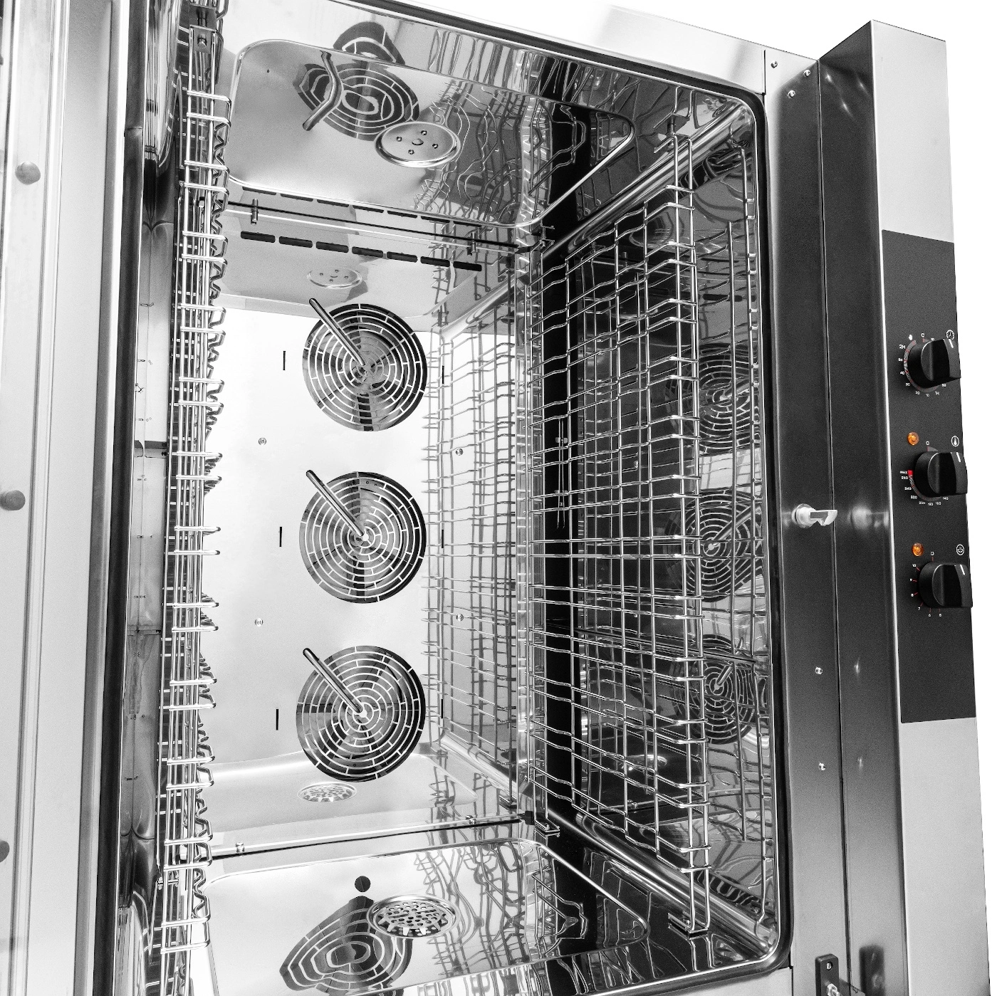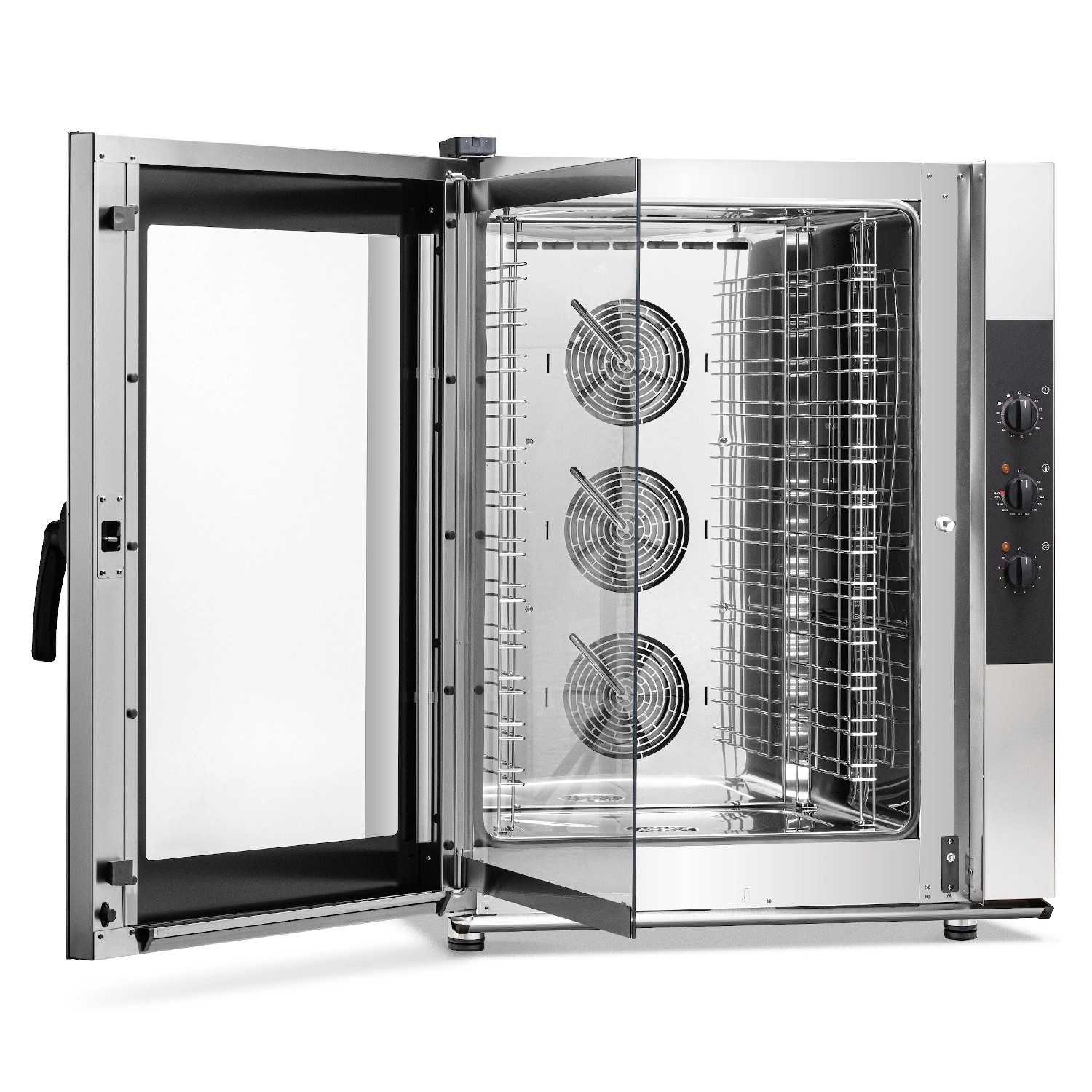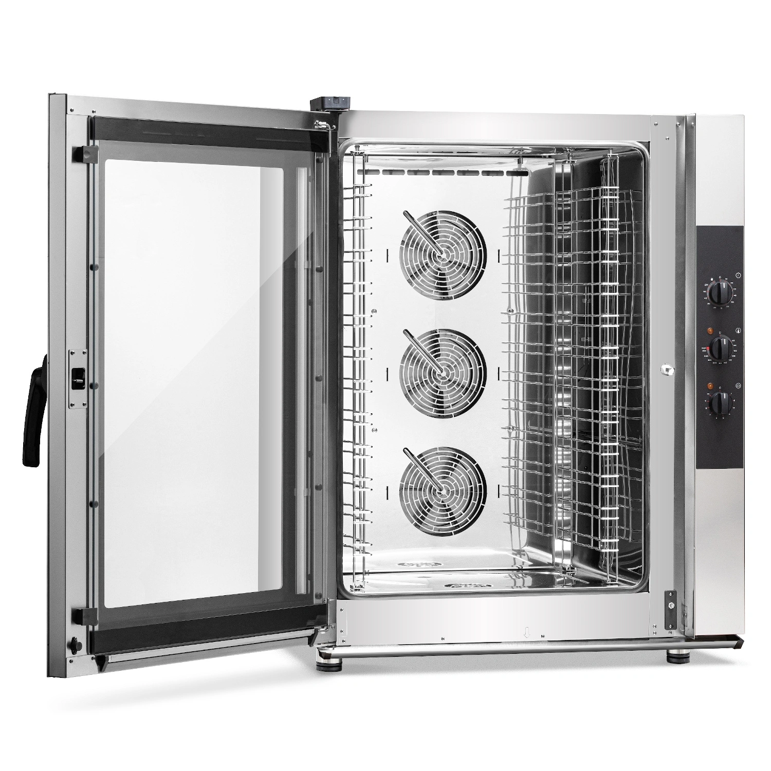 Zariadenie je vhodné na prípravu širokej škály jedál – od pečenia mäsa, cez varenie zeleniny v pare, až po pečenie koláčov alebo pečiva. Možnosť súčasného spracovania až 12 nádob GN 1/1 robí z tohto zariadenia nenahraditeľného pomocníka vo veľkých jedálňach, cateringu či hromadných kuchyniach. Halogénové osvetlenie umožňuje úplnú kontrolu nad procesom pečenia a manuálne ovládanie umožňuje rýchle zmeny parametrov počas práce.