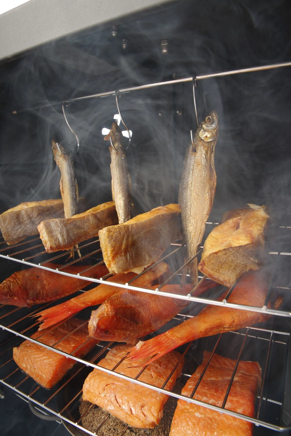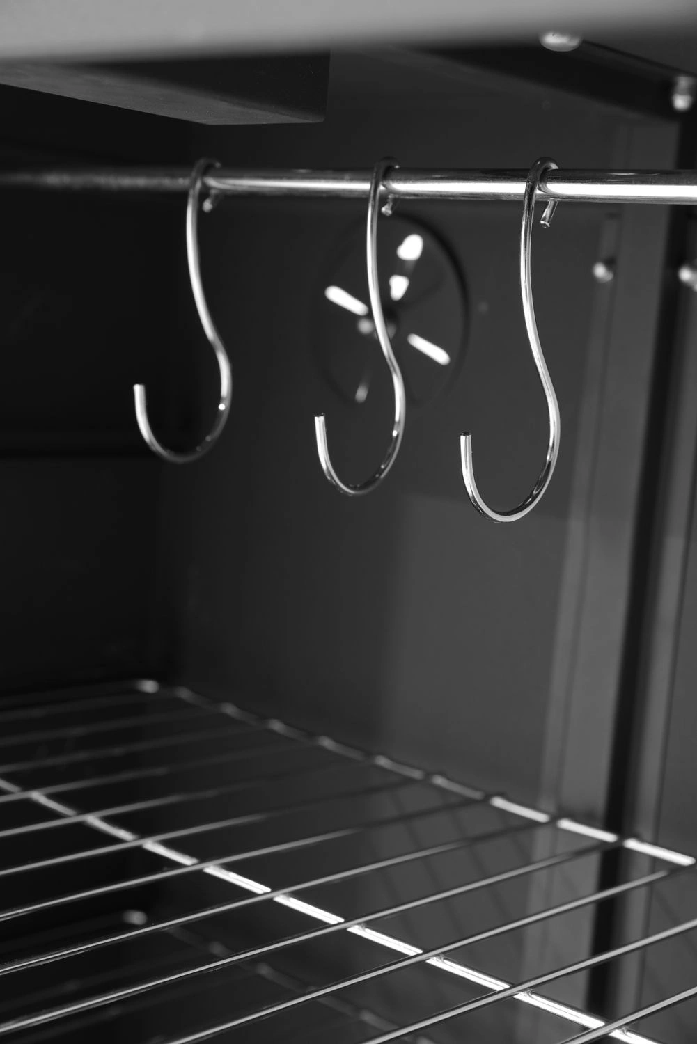 Vďaka trom policiam s rozmermi 40x27,9 cm každá môže používateľ údiť rôzne produkty alebo väčšie množstvo naraz. Navyše, v súprave sú háčiky na zavesenie mäsa, čo umožňuje údenie väčších kusov a zvyšuje flexibilitu použitia zariadenia. Vetrací otvor umiestnený na zadnej strane pece umožňuje kontrolu cirkulácie vzduchu, čo sa prejavuje na lepšej chuti a aróme údených pokrmov.