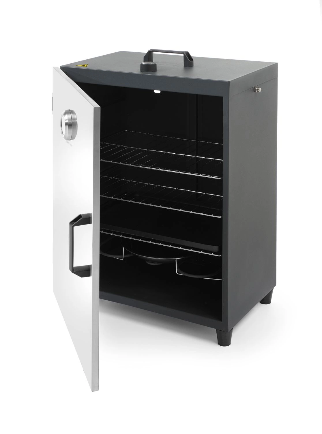 • Dvojito izolované dvere so zatváraním na magnet – zaručujú udržiavanie stálej teploty a bezpečnosť počas údenia.