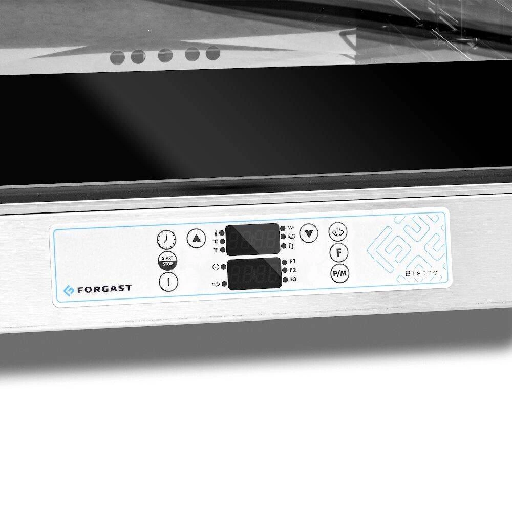 Elektrická konvektomata s parou FORGAST FG09511 je profesionálne zariadenie určené na intenzívnu prevádzku v gastronómii. Vyznačuje sa možnosťou súčasnej prípravy veľkého množstva jedál vďaka kapacite na 10 GN 1/1 alebo 10 plechov 60x40 cm a modernému systému injekčného generovania pary. Ideálne sa hodí do reštaurácií, pekární, cukrární a cateringových prevádzok, kde je dôležitá presnosť a efektivita tepelného spracovania.