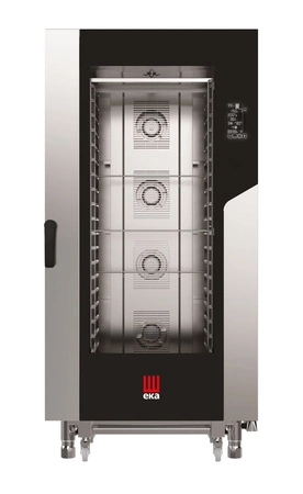 Elektrická kombinovaná parná rúra Millenial Black Mask Gastro. Vhodné pre zásobníky 20 GN 1/1. Rúra má čierny, 7 a dotykový ovládací panel, ktorý sa po vypnutí úplne schová do čiernych dvierok. Funkcia Airflowlogic je riešením, ktoréós vďaka prepracovanému dizajnu digestora zlepšilo cirkuláciu vzduchu ventilátora. Humilogic je nový zvlhčovací systém, ktorý privádza vodu priamo z ventilátora. Tým sa zabezpečuje vysoká úroveň vlhkosti, ktorá znižuje spotrebu vody. Drylogic je tiež inovatívny systém. Ventilór riadený počítačom kontroluje výmenu vzduchu v komore a odstraňuje nadmernú vlhkosť. Teplota vo vnútri vareného výrobku sa meria pomocou bodovej sondy. Predohrev ohrieva komoru rúry na 30 stupňov, zatiaľ čo Cooldown komoru ochladzuje, aby sa mohol začať ďalší proces pečenia. Nádoba USB uľahčuje nahrávanie nových receptov na varenie a údajov HACCP. Ideálne funguje aj ako komora na pečenie a banketová komora. Do kuchárskej knihy sa zmestí až 100 receptovóv 10 krokochókaždý. Regulácia teploty od 30 stupňov;C-270 stupňov;C.