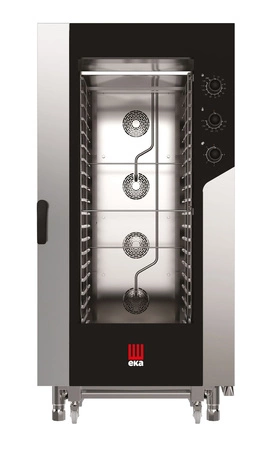 Elektrická kombinovaná parná rúra Millenial Smart Gastro. Je určený pre 20 plechov GN 1/1 a má 3 gombíky, ktoré slúžia na: Nastavenie času od 10 do 120 minút alebo Non-stop prevádzka, nastavenie teploty 100 °C až 275 °C, 5-stupňová regulácia zahmlievania komory. Dvere s dvojitým sklom majú otvárací zámok, ktorýóje navrhnutý tak, aby chránil obsluhu pred nekontrolovaným pohybom. Tesnenie dverí vyrobené z odolného silikónu, ktoré si ľahko vymeníte sami. Odtokový žliabok pod dvierkami. LED osvetlenie komory. Izolovaný plášť rúry šetrí elektrickú energiu. Komora aj plášť rúry vyrobené z nehrdzavejúcej ocele. Vyrovnanie rúry je možné vďaka nastaviteľným nožičkám. Vyžaduje sa pripojenie na elektrinu, upravenú vodu a kanalizáciu.