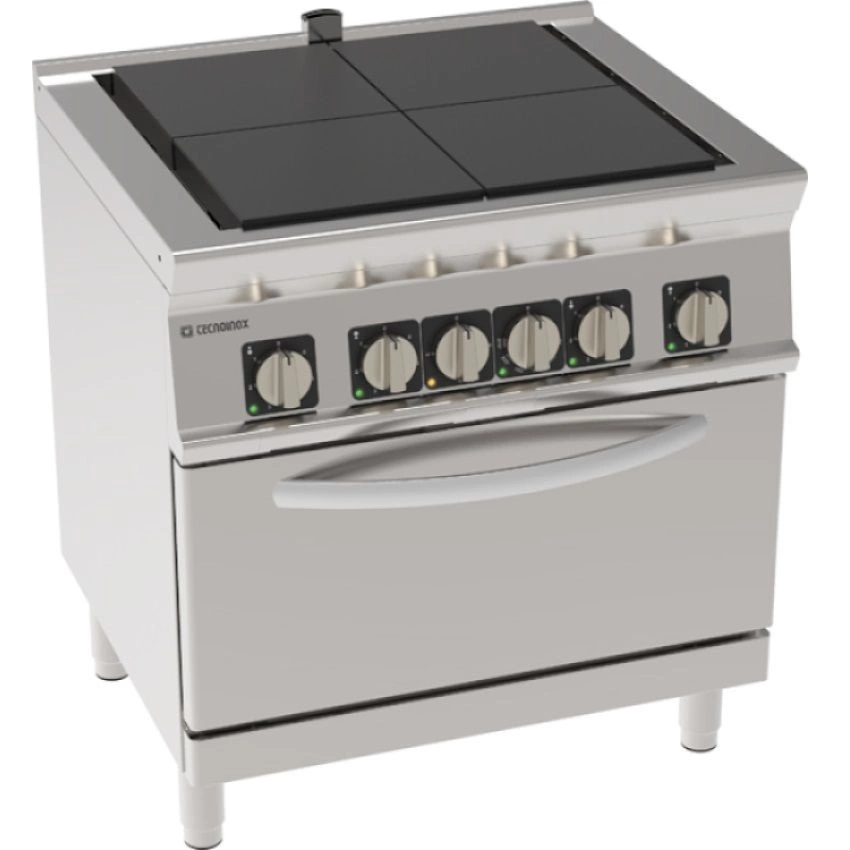 Kuchynský model so vzduchotesnou varnou doskou, tvarovanou hornou časťou a tvarovanou doskou pre lepšiu hygienu. Okrem toho sú platne spolu s rovinným sklápaním pre jednoduchšiu obsluhu. Zariadenie má 6 úrovní výkonu. Výkon varných zón je 4x3 kW. Rozmery varnej dosky sú 30x30 cm. Spotrebič vybavený statickou rúrou, elektrickou GN 2/1 (4x) s jedným roštom. Rozmery priestoru rúry sú 57,5x65x30 cm. Rozsah teplôt v rúre 60-270 °C. Všetky komponenty sporáka, od súčiastok až po materiály, sú európskeho pôvodu a miera poruchovosti presahuje 99 %. Elektrické variče Tecnoinox ponúkajú nielen výkon a funkčnosť, ale aj dizajn a robustnosť v jednom, čo je ideálne pre profesionálov v oblasti stravovania.