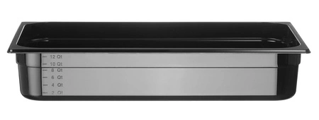 GN 1/1 nádoba, 10 cm hlboká. Vyrobená z vysokokvalitného čierneho polykarbonátu, ktorý je odolný voči pachom a chutiam. Odolný voči teplotám od -40°C do 110°C. Možno stohovať a umývať v umývačke riadu.
