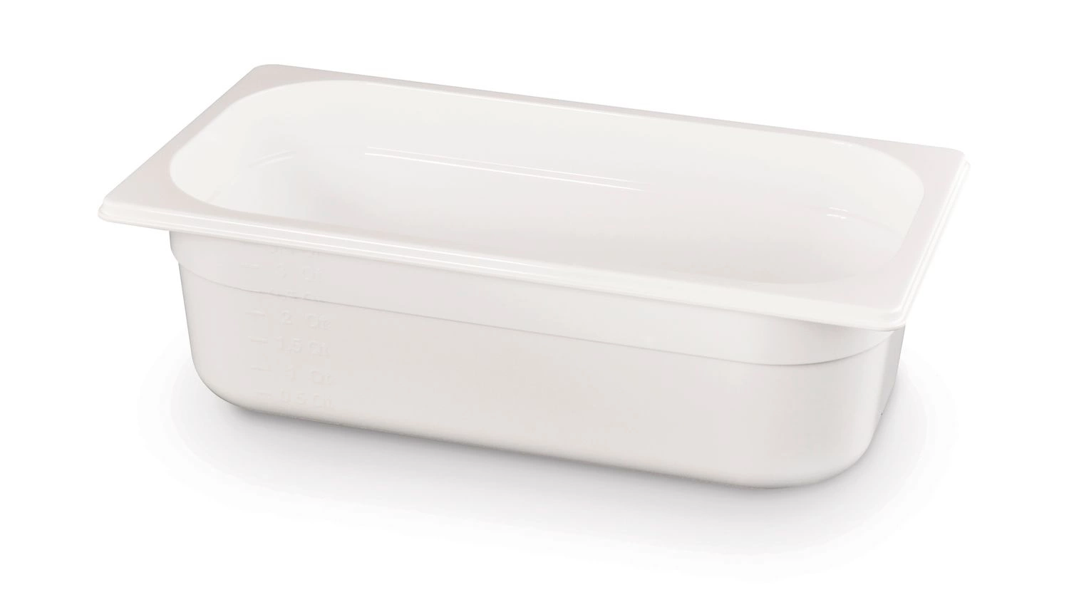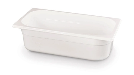 GN 1/3 kontajner s hĺbkou 10 cm z bieleho polykarbonátu. Neabsorbuje chuteóa pachyóa. Odolný voči teplotám od -40 do +99oC.