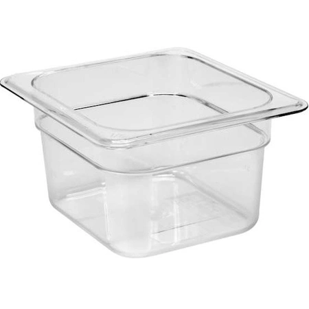 GN 1/6 cateringová nádoba s hĺbkou 10 cm a objemom 1,5 litra. Nádoba je vyrobená z polykarbonátu najvyššej kvality, veľmi pevná a odolná voči poškodeniu. Hladký povrch a hrany a zaoblené rohy uľahčujú udržiavanie čistoty nádoby. Polykarbonát neabsorbuje žiadne látky ani pachy, ani nenarušuje chuť skladovaných potravín. Odolný voči teplotám od - 40oC až 99oC, takže nádobu možno uchovávať v chladničke aj v nej skladovať teplé potraviny. Nádoba nie je určená na použitie v bemeroch a peciach KP. Okrem toho sú nádoby vybavené litrovou stupnicou, aby bolo možné kontrolovať hladinu obsahu. Nádoba má po obvode dodatočný reliéf, ktorý spevňuje jej konštrukciu, zabraňuje pokrčeniu počas používania a umožňuje stohovanie. Nádoba je vhodná na umývanie v umývačke riadu.