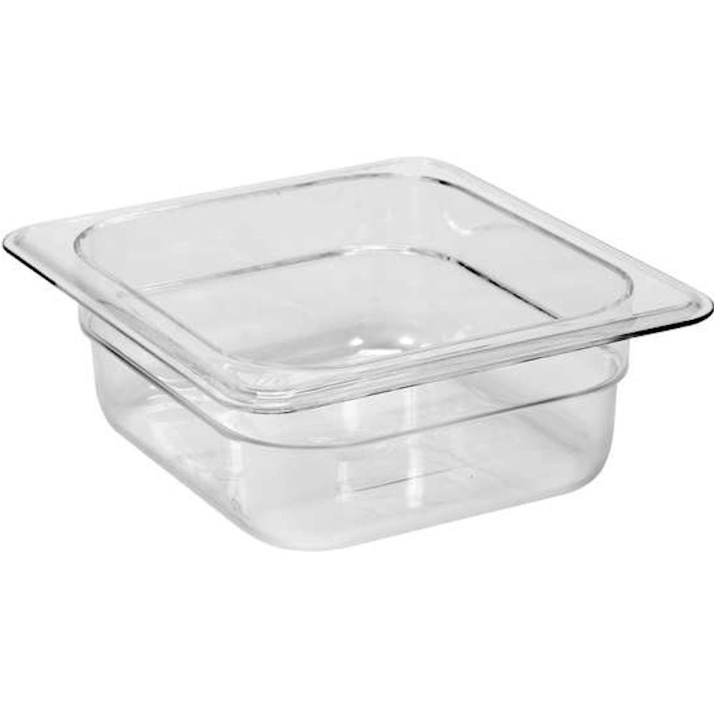 GN 1/6 cateringová nádoba s hĺbkou 6,5 cm a objemom 1 liter. Nádoba je vyrobená z polykarbonátu najvyššej kvality, veľmi pevná a odolná voči poškodeniu. Hladký povrch a hrany a zaoblené rohy uľahčujú udržiavanie čistoty nádoby. Polykarbonát neabsorbuje žiadne látky ani pachy, ani nenarušuje chuť skladovaných potravín. Odolný voči teplotám od - 40oC až 99oC, takže nádobu možno uchovávať v chladničke aj v nej skladovať teplé potraviny. Nádoba nie je určená na použitie v bemeroch a peciach KP. Okrem toho sú nádoby vybavené litrovou stupnicou, aby bolo možné kontrolovať hladinu obsahu. Nádoba má po obvode dodatočný reliéf, ktorý spevňuje jej konštrukciu, zabraňuje pokrčeniu počas používania a umožňuje stohovanie. Nádoba je vhodná na umývanie v umývačke riadu.