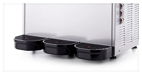 - Nezávislá prevádzka nádob – Každá z troch nádob môže pracovať v inom režime, čo umožňuje súčasnú prípravu rôznych mrazených nápojov alebo džúsov. Toto riešenie umožňuje rýchlu reakciu na potreby zákazníkov, najmä v prevádzkach so širokou ponukou.