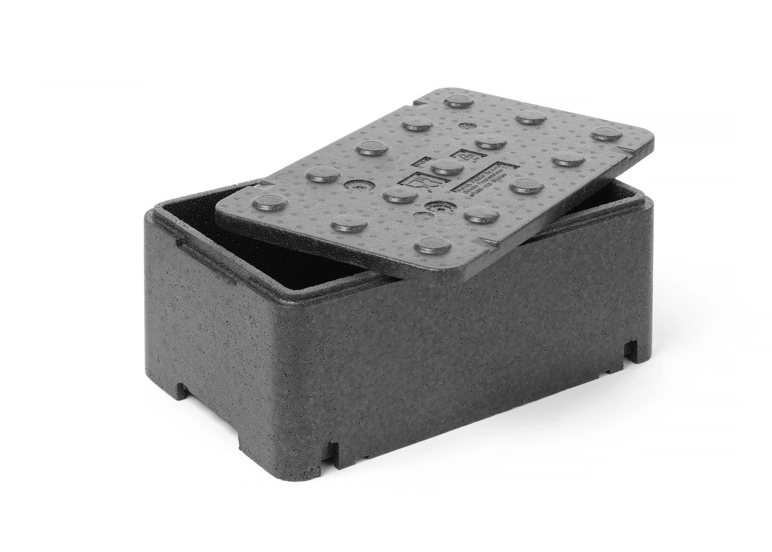 Izolovaná nádoba z pyocelánu. . Je určený na prepravu a skladovanie potravín v chladiacich alebo mraziacich podmienkach. Má nasadené veko. Možno umývať v umývačke riadu.