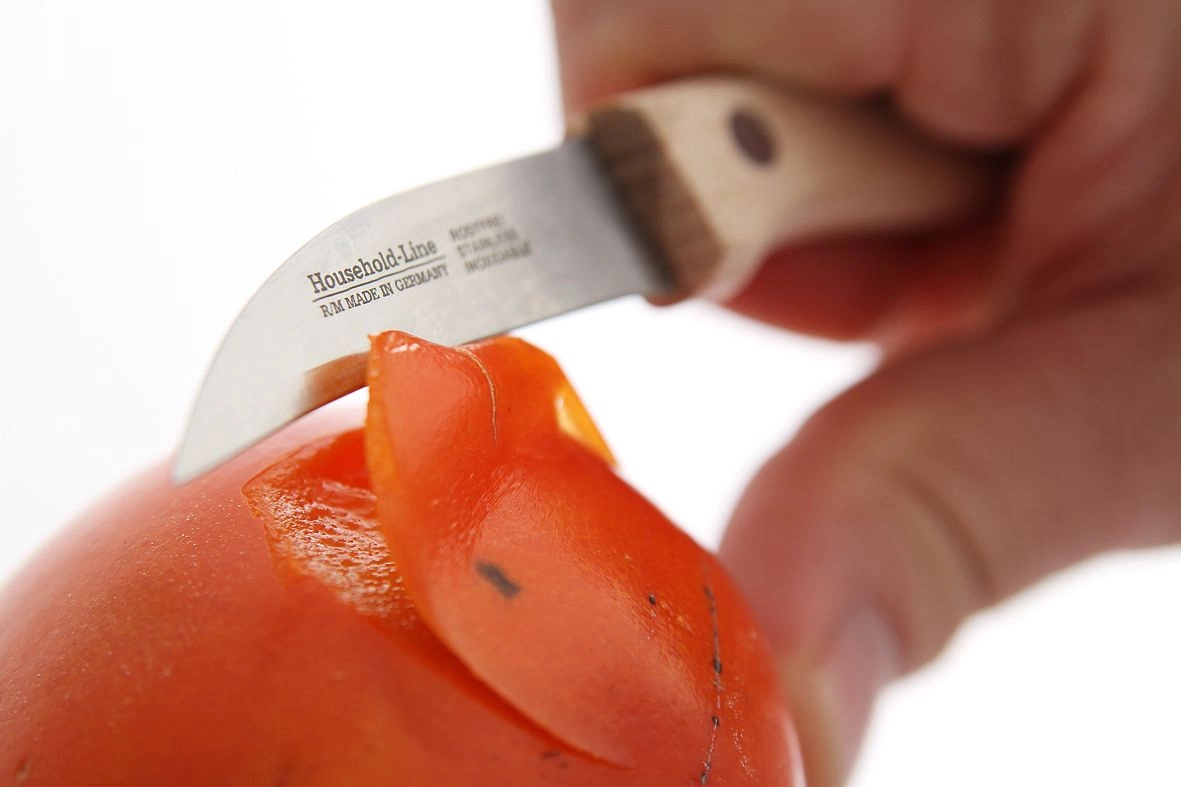 Lúpací nôž So zahnutou čepeľou z nehrdzavejúcej ocele. Drevená rukoväť. Nemožno umývať v umývačke riadu.