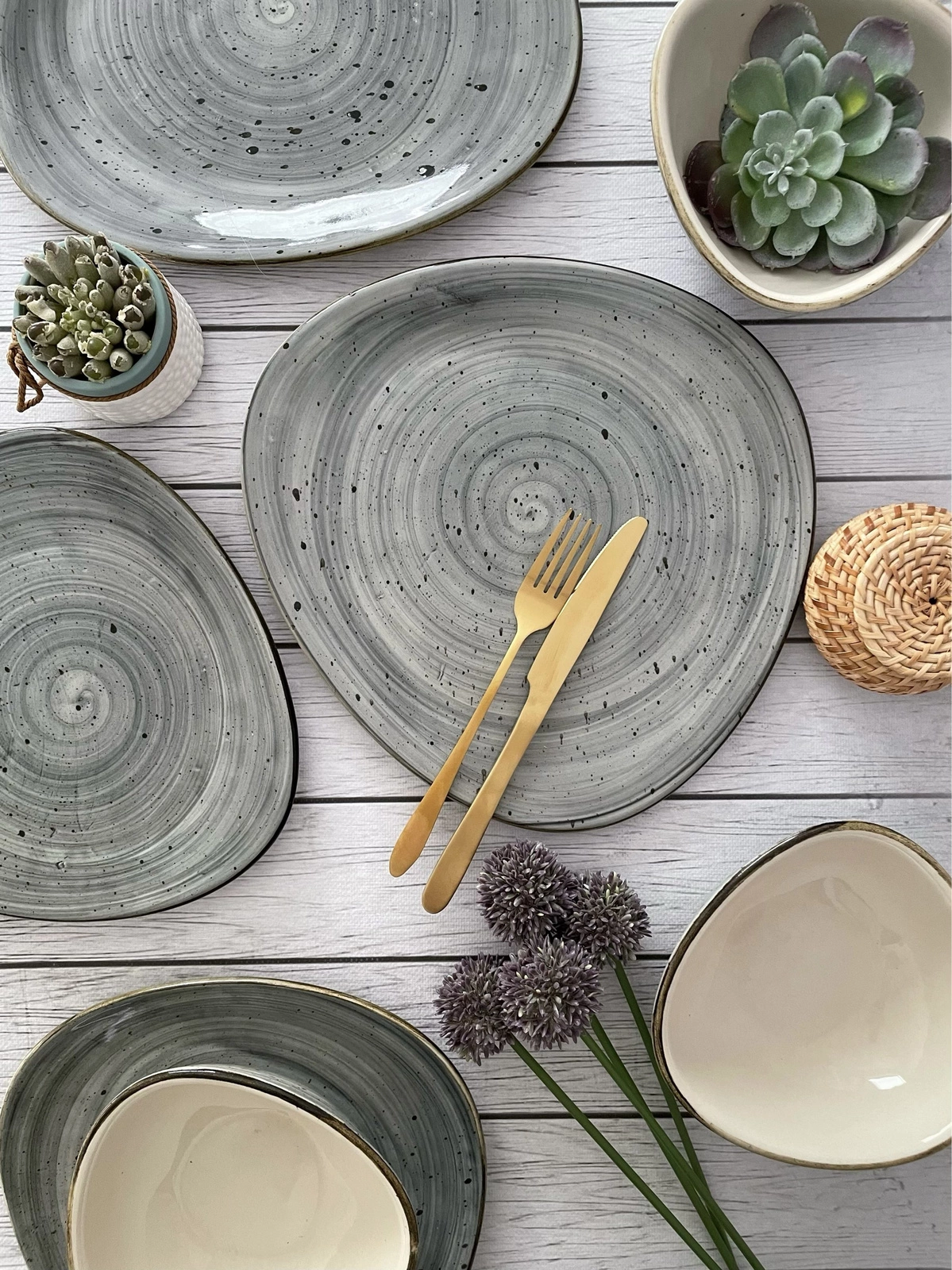 - Rustikálny štýl – Kombinácia sivej farby s prirodzenou štruktúrou kameniny vnáša do interiéru autentickosť a teplo, zvýrazňujúc remeselný charakter produktu.