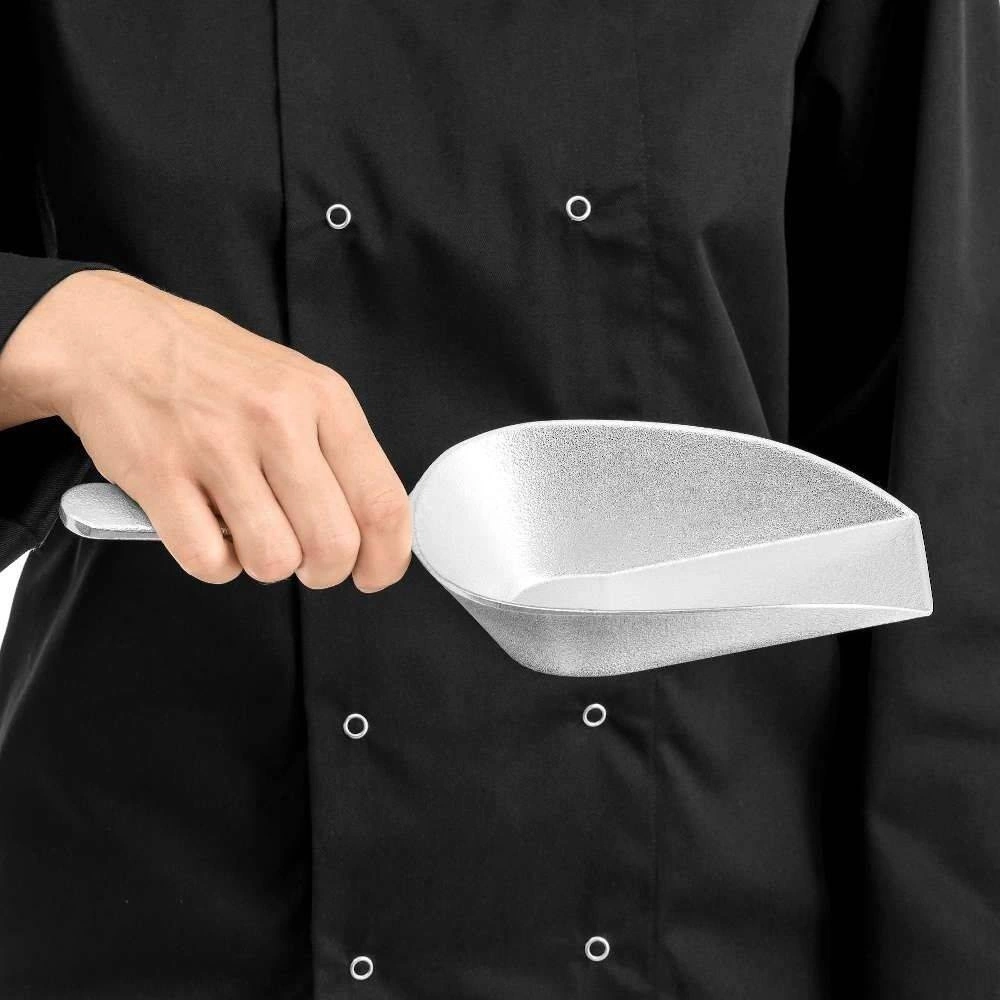 Hliníková lopatka FORGAST s objemom 0,47 l bola navrhnutá s ohľadom na intenzívne používanie. Jej plochý povrch uľahčuje naberanie ako drobných, tak aj o niečo väčších sypkých produktov. Vďaka tomu sa výborne hodí do pekární, reštaurácií, potravinových obchodov či veľkoobchodov, kde je rýchlosť a presnosť kľúčová. Hliníková konštrukcia je odolná voči poškodeniu a ľahko sa udržiava v čistote, čo prispieva k hygiene práce. V balení sa nachádza jedna lopatka pripravená na okamžité použitie.