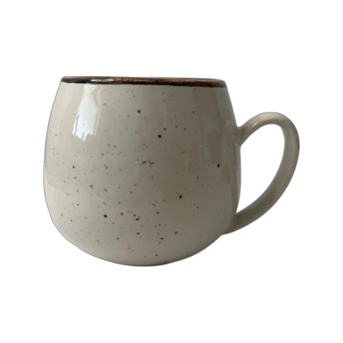 Hrnček je vyrobený z kameniny s veľmi nízkou nasiakavosťou, čo sa prejavuje na jeho odolnosti a dlhej životnosti. Každý kus je ručne dekorovaný technikou špliechania a štetca, čo mu dodáva autentický a neopakovateľný charakter. Ergonomický tvar zabezpečuje pohodlné používanie a krémová farba podčiarkuje univerzálnosť riadu.