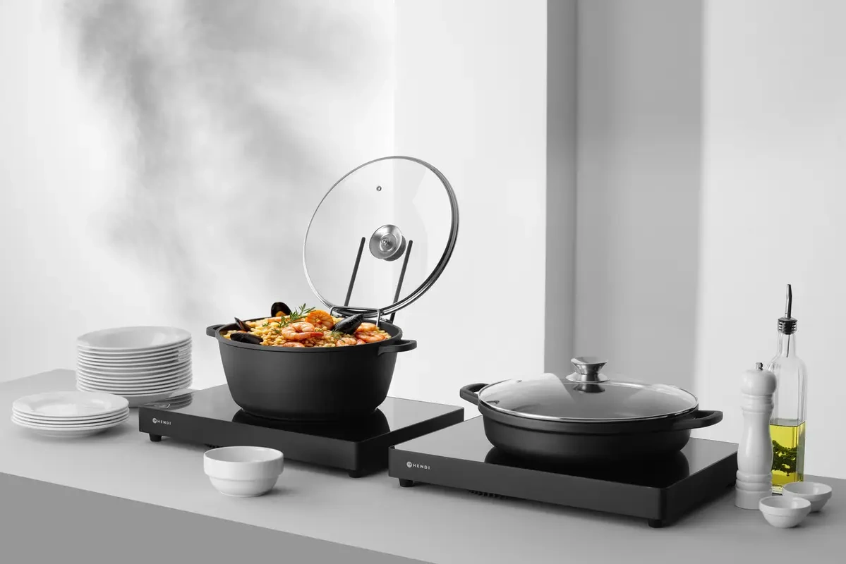 Hrniec s nepriľnavým povrchom HENDI spája funkčnosť, trvácnosť a univerzálnosť, čo z neho robí vynikajúcu voľbu pre profesionálnu aj domácu kuchyňu. Vďaka pevnej konštrukcii, jednoduchému čisteniu a možnosti použitia na rôznych zdrojoch tepla umožňuje pripraviť rozmanité jedlá pohodlným a bezpečným spôsobom. Moderný dizajn a veľký objem zabezpečia, že ide o riešenie na roky, ktoré určite splní očakávania aj tých najnáročnejších kuchárov.