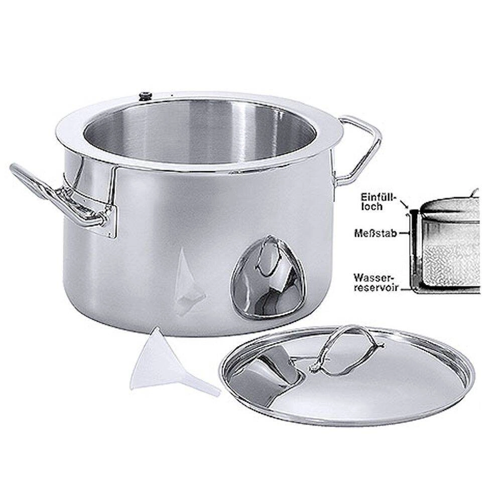 Hrniec na omáčky s pokrievkou značky CONTACTO je pevná a funkčná kuchynská nádoba, ktorá sa vyznačuje objemom 3 litre a univerzálnym využitím. Vyrobený z nehrdzavejúcej ocele, výborne sa uplatní v domácej aj profesionálnej kuchyni, umožňuje prípravu rôznych druhov omáčok, polievok či menších porcií jedál. Produkt je vybavený praktickým lievikom, ktorý uľahčuje prelievanie obsahu.