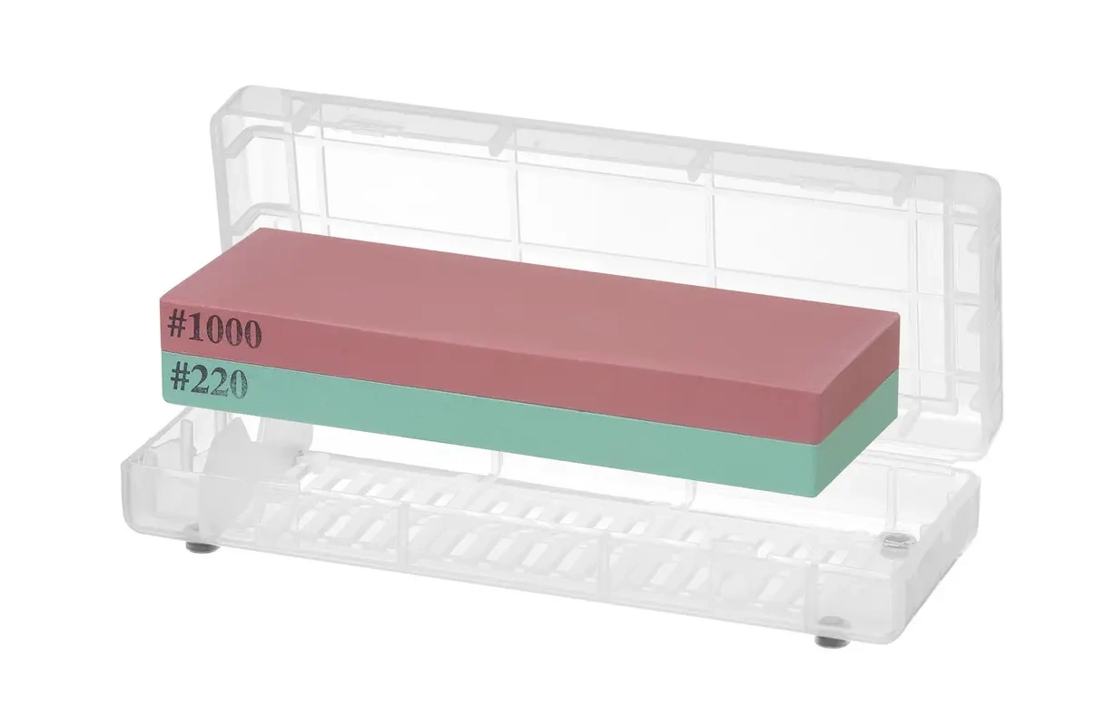 - Obojstranný kameň - kombinuje dve dosky s rôznou zrnitosťou, 220: na regeneráciu ostria a brúsenie čepele, 1000: na základné ostrenie nožov.