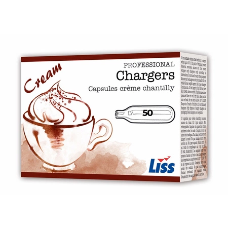 Kartuše značky Liss do sifónu na šľahačku - balenie 50 kusov. Vyrobené z vysoko kvalitnej ocele, ktorá odolá tlaku potrebnému na výrobu šľahačky. Každá kartuša je naplnená 8 g čistého N2O (oxidu dusného), ktorý je úplne bezpečný pre zdravie a je bez chuti s mierne sladkou vôňou. Plyn je navyše bakteriostatický - chráni pred rastom baktérií, čo sa prejavuje v možnosti skladovať šľahačku v sifóne dlhšie bez rizika jej rýchlejšieho pokazenia.