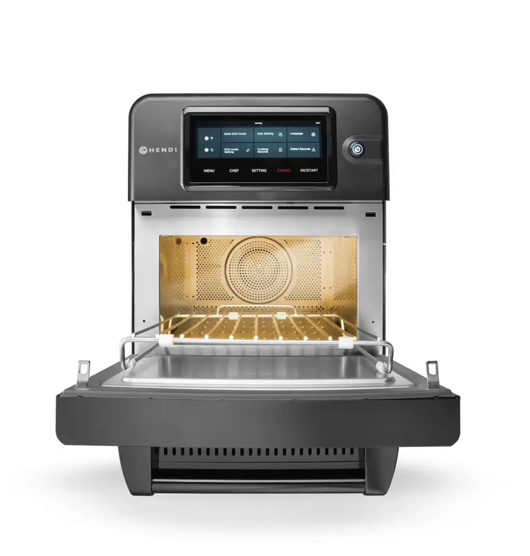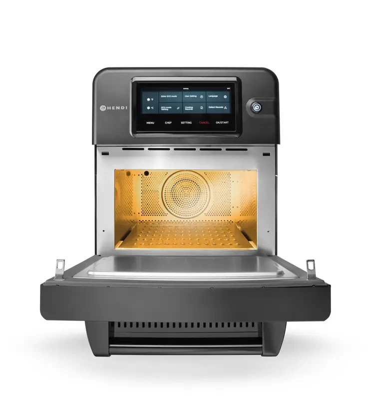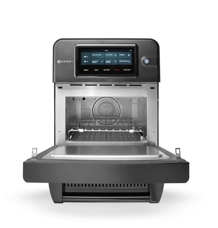 • Kombinácia troch technológií ohrevu – rúra využíva mikrovlny, konvekciu a náraz tepla, čo výrazne skracuje čas prípravy jedál a zabezpečuje rovnomerný výsledok pečenia aj pri veľkých dávkach. Vďaka tomu je zariadenie ideálne na rýchlu prípravu pizze, zapekaných jedál alebo obedových pokrmov v prevádzkach s veľkou fluktuáciou zákazníkov.