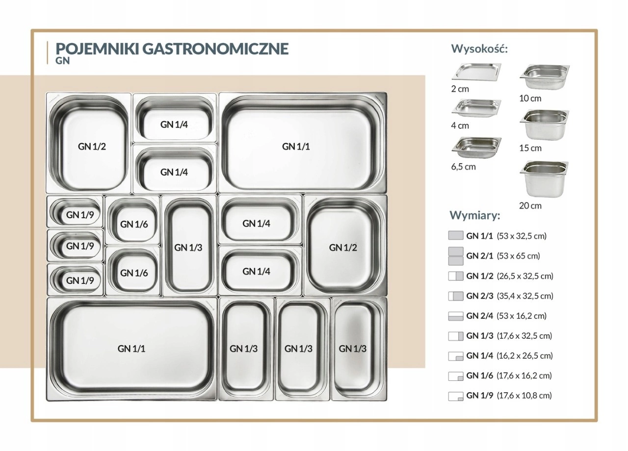 Gastronomická nádoba vyrobená z nehrdzavejúcej ocele je univerzálnym vybavením profesionálnych kuchýň, jedální alebo cateringových spoločností. Vyznačuje sa vysokou odolnosťou proti korózii, pevnosťou a všestrannosťou použitia. Vďaka hĺbke 6,5 cm je ideálna na skladovanie, prepravu aj spracovanie potravín.