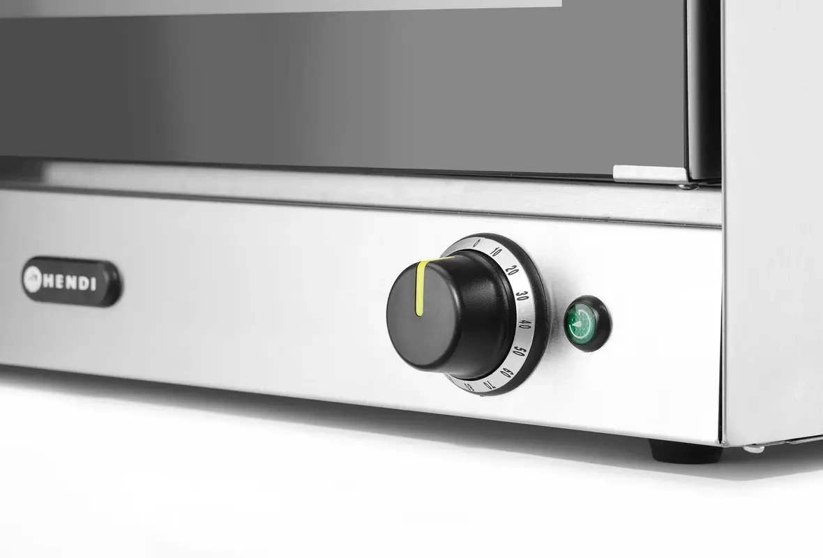Konvekčná pec H100S HENDI sa skvele uplatní v reštauráciách, pekárňach, jedálňach alebo cateringových službách, kde je kľúčová rýchlosť a opakovateľnosť prípravy jedál. Priame zvlhčovanie komory umožňuje prípravu šťavnatých mäs, pečiva s chrumkavou kôrkou a pečív vyžadujúcich presnú kontrolu vlhkosti. Zariadenie je vybavené časovačom do 120 minút, čo uľahčuje organizáciu práce v kuchyniach s vysokou prevádzkou. V sade sa nachádza nádoba GN 1/1 s hĺbkou 65 mm a rošt GN 1/1, ktoré rozširujú možnosti využitia pece pre rôzne kulinárske techniky.