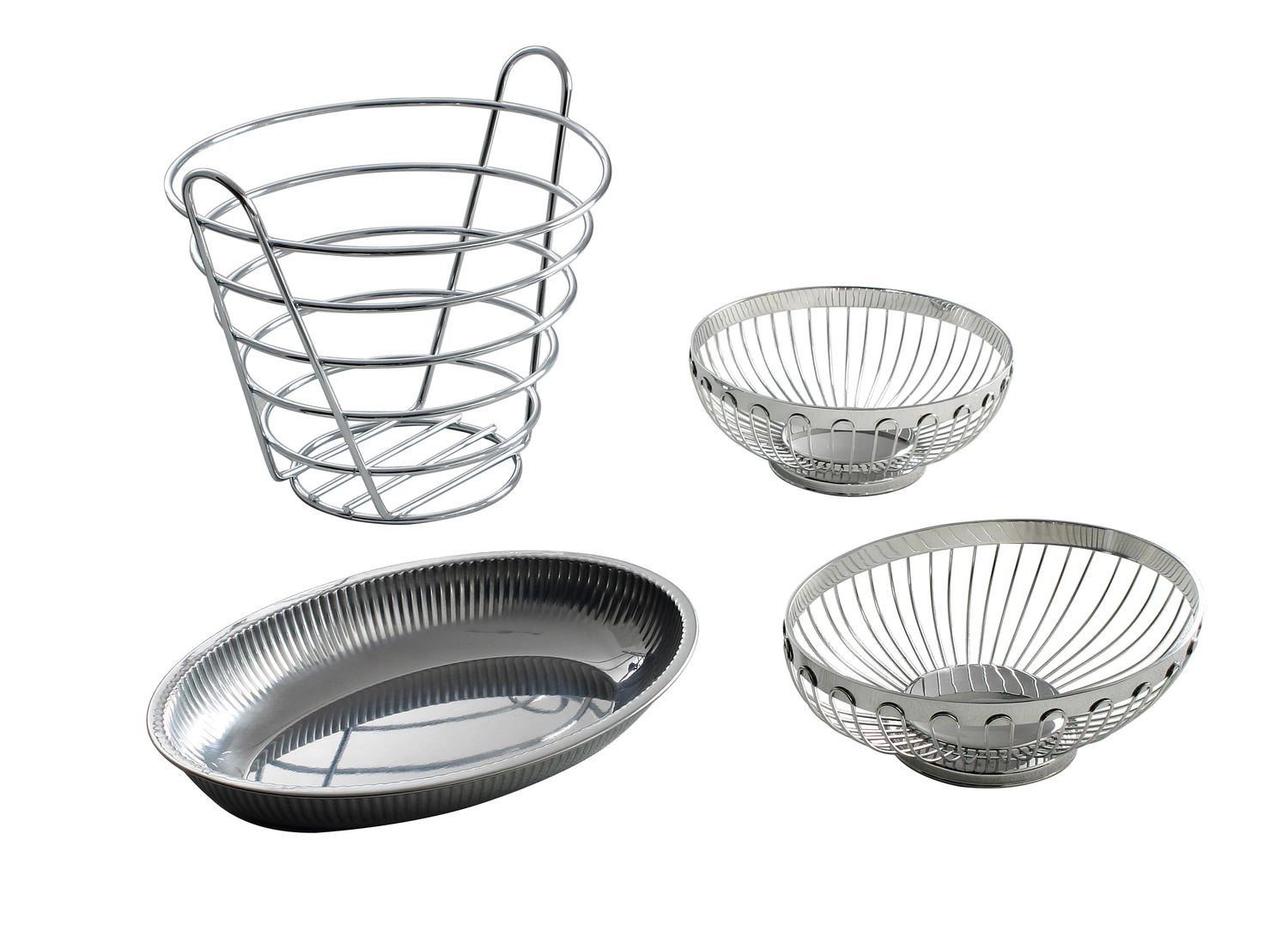 Oceľový košík na ovocie. Vyrobený z pochrómovaného drôtu. Kôš nie je vhodný do umývačky riadu.