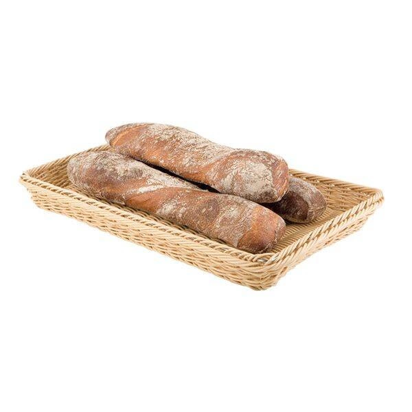 Košík je vyrobený z vysokokvalitného polyratanu, ktorý imituje prírodné vlákna, no zároveň je ľahko udržiavateľný, odolný voči poškriabaniu a mechanickému poškodeniu. Konštrukcia košíka zabezpečuje dobrú cirkuláciu vzduchu, vďaka čomu pečivo zostáva dlhšie čerstvé. Obdĺžnikový tvar umožňuje pohodlné umiestnenie viacerých košíkov vedľa seba, čo zlepšuje organizáciu bufetu.