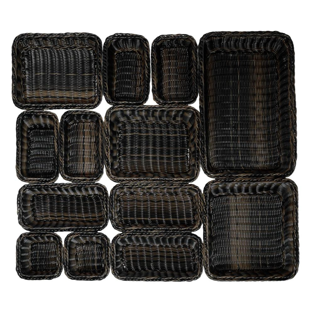 Košík je vyrobený z vysokokvalitného polypropylénu, ktorý je odolný voči vlhkosti a ľahko sa udržiava v čistote. Okraje zosilnené drôtom z nehrdzavejúcej ocele zvyšujú jeho stabilitu a odolnosť. Vďaka obdĺžnikovému tvaru je mimoriadne funkčný a klasická čierna farba sa hodí do väčšiny interiérov a súprav.