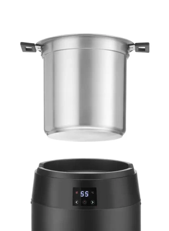 - Objem: 10 litrov – umožňuje prípravu a ohrievanie veľkého množstva jedál, čo je ideálne pre gastronomické prevádzky a počas obsluhy väčších podujatí.