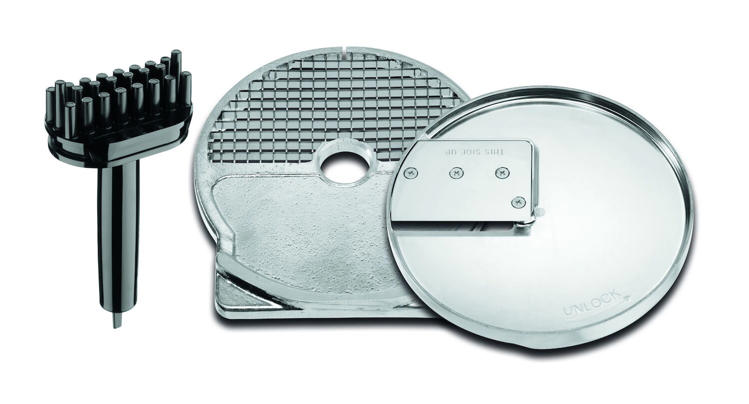 Kotúč na kocky 8 mm s priemerom 177,8 mm je dokonalým doplnkom funkčnosti multifunkčných spotrebičov Waring, ktorý je ideálny na prípravu rovnomerných a estetických kociek z rôznych surovín v profesionálnej kuchyni.