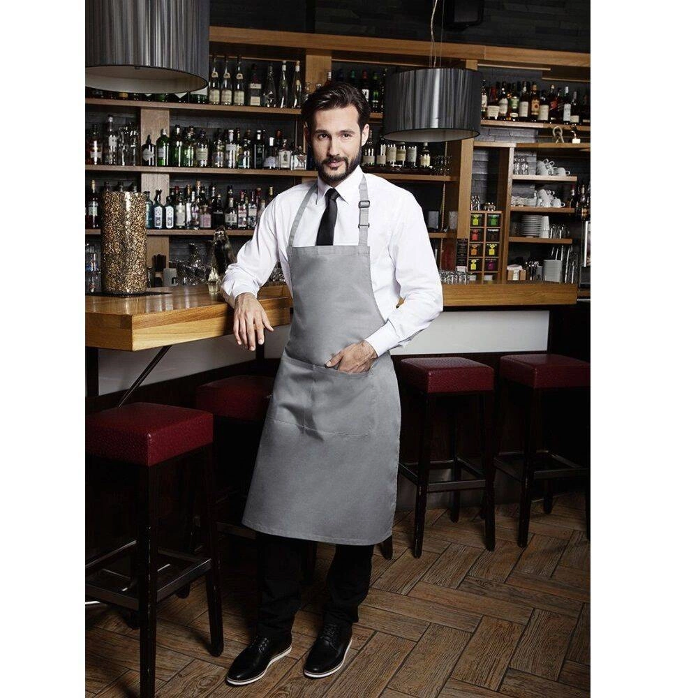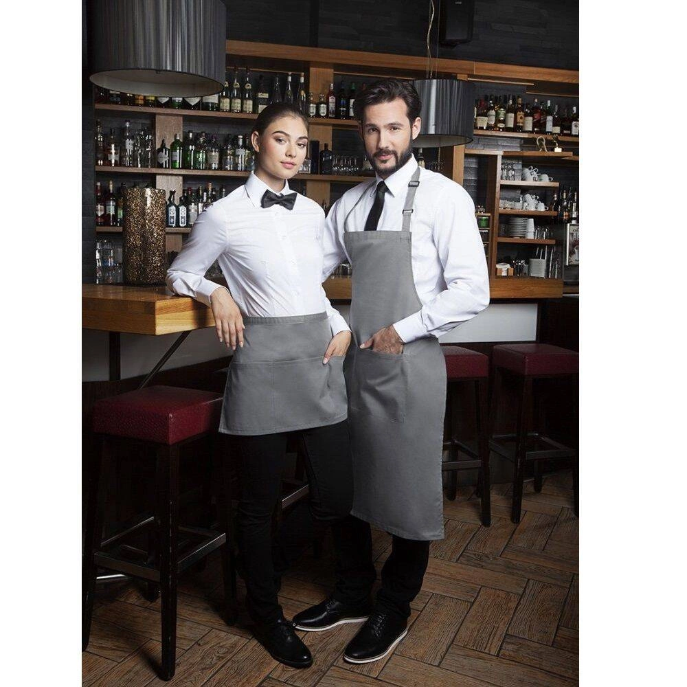 Kuchárska zástera Basic značky Karlowsky. Čadičovo sivá farba. Vyrobené v 65% polyester / 35% bavlna. . Diagonálna väzba. Rozmery 75x90 cm. Zástera s popruhmi zo zásterového materiálu so zosilnenými napínacími bodmi - popruh na krk so sponou na nastavenie dĺžky cca 70 cm - náplasťové vrecko s 2 priehradkami (40 x 20 cm). Možno prať v práčke a čistiť chemicky. Vhodné na žehlenie.