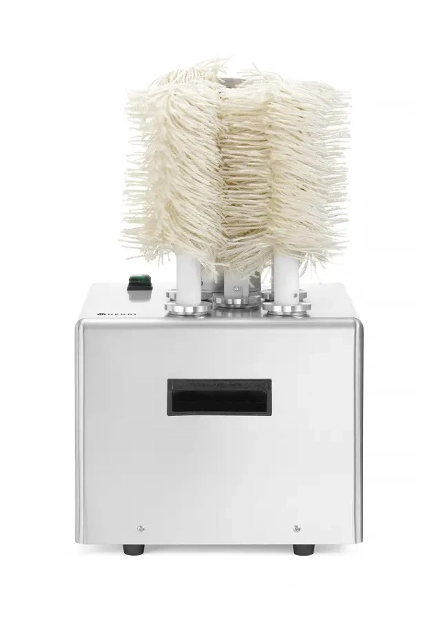 Leštička skla HENDI je spoľahlivý nástroj pre profesionálne gastronomické zariadenia, ktorý poskytuje vynikajúce leštenie a sušenie pohárov, najmä po ich umytí v umývačke riadu. Vďaka piatim vymeniteľným kefám z mikrovlákna zariadenie účinne odstraňuje všetky stopy vody a zároveň leští sklo zvnútra aj zvonku. Leštička dokáže vyleštiť až 330 pohárov za hodinu, takže je ideálna pre veľké reštaurácie, hotely a bary.