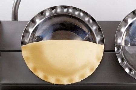 • 2-pozičná forma – umožňuje súčasne pripraviť dva veľké pirohy s priemerom 19,5 cm, čo výrazne urýchľuje proces ich lepenia a uľahčuje prípravu väčšieho množstva jedál.