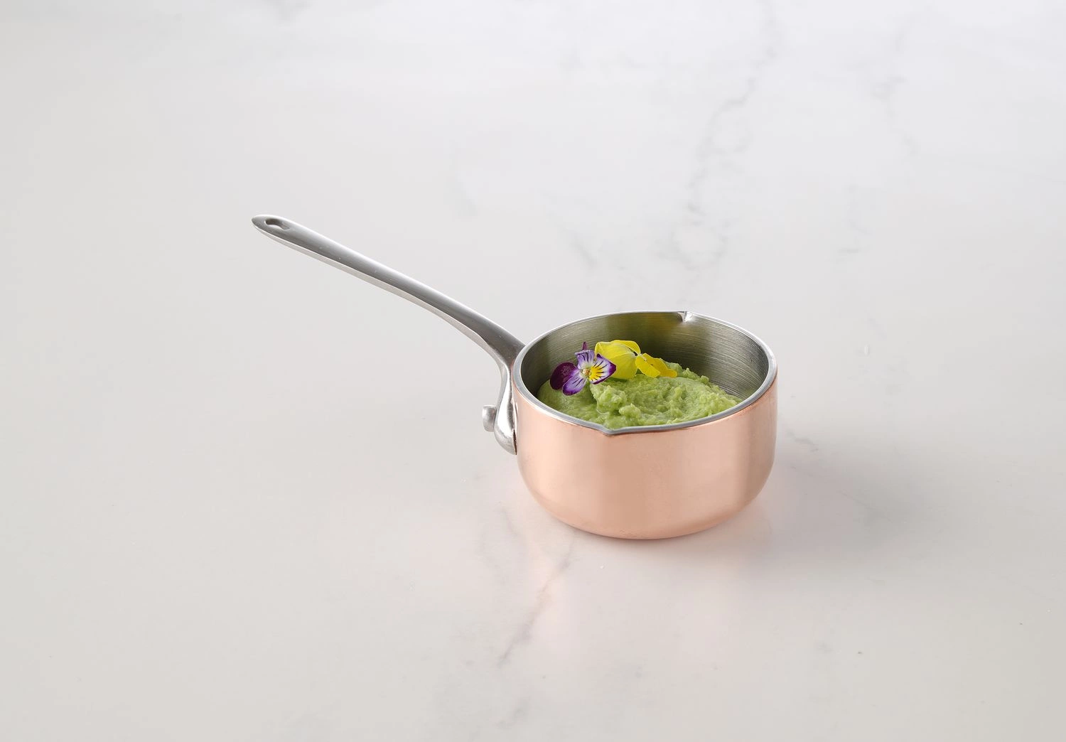 Rondel miniaturowz trojvrstvového materiálu s hrúbkou 2,5 mm. (meď, hliník, nehrdzavejúca oceľ). Rukoväť upevnená pomocou nitov