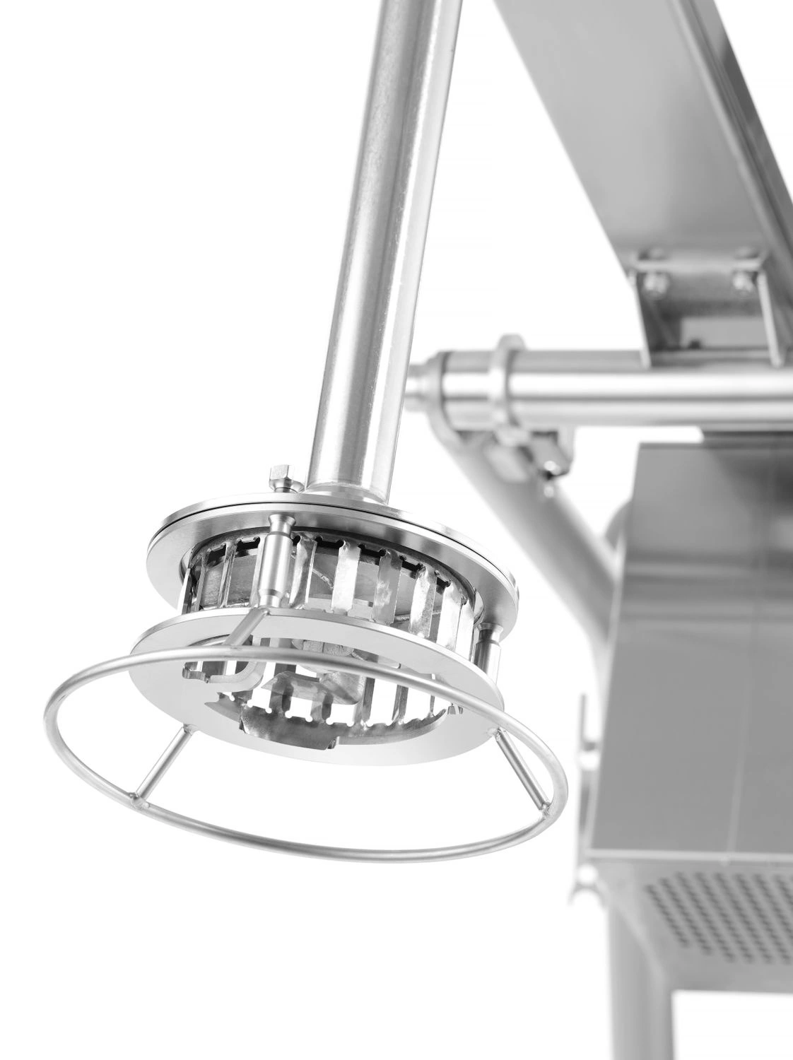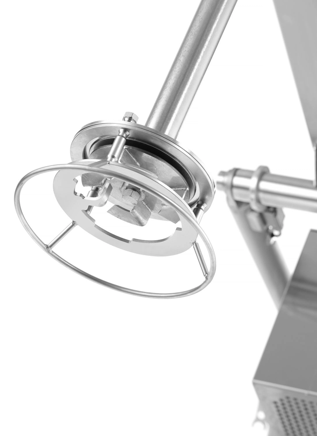 Bezpečnostný mikrospínač kontrolujúci polohu stroja: neumožňuje spustenie turbíny, keď je rameno príliš vysoko alebo príliš nízko. Na použitie s 3 voliteľnými a ľahko vymeniteľnými miešacími sitami.